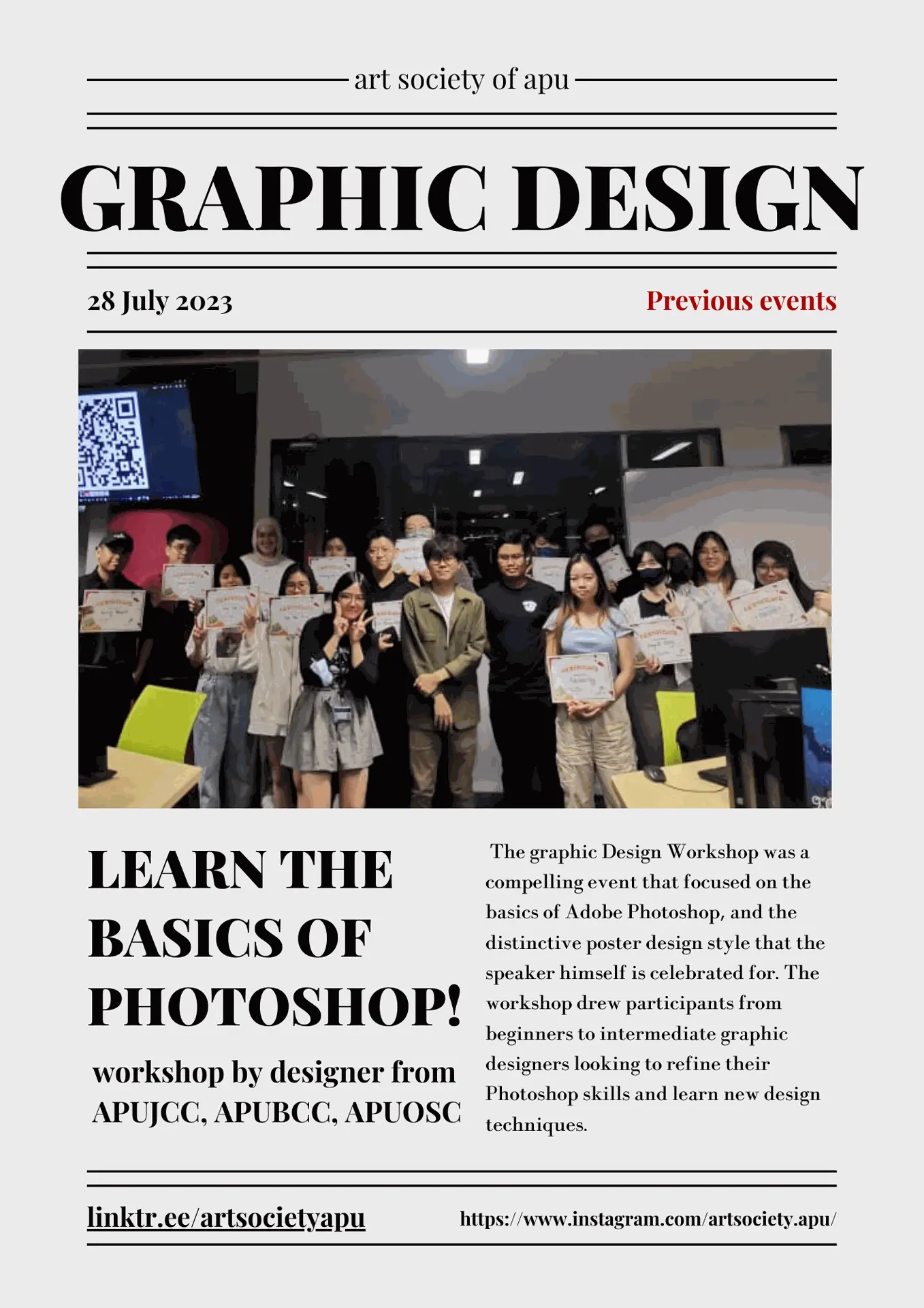 Designed an official promotional poster for a talk segment during APU’s Venture Day 2022. The poster was created using Canva, focusing on clarity, professionalism, and visual alignment with the event’s branding. This project reflects my experience in designing for real-world events and collaborating with institutional stakeholders.
